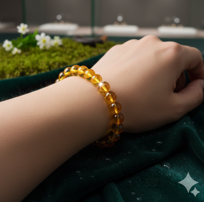 Golden Citrine Crystal Bracelet – Natural Healing Stone Beaded Bracelet for Prosperity & Positive Energy